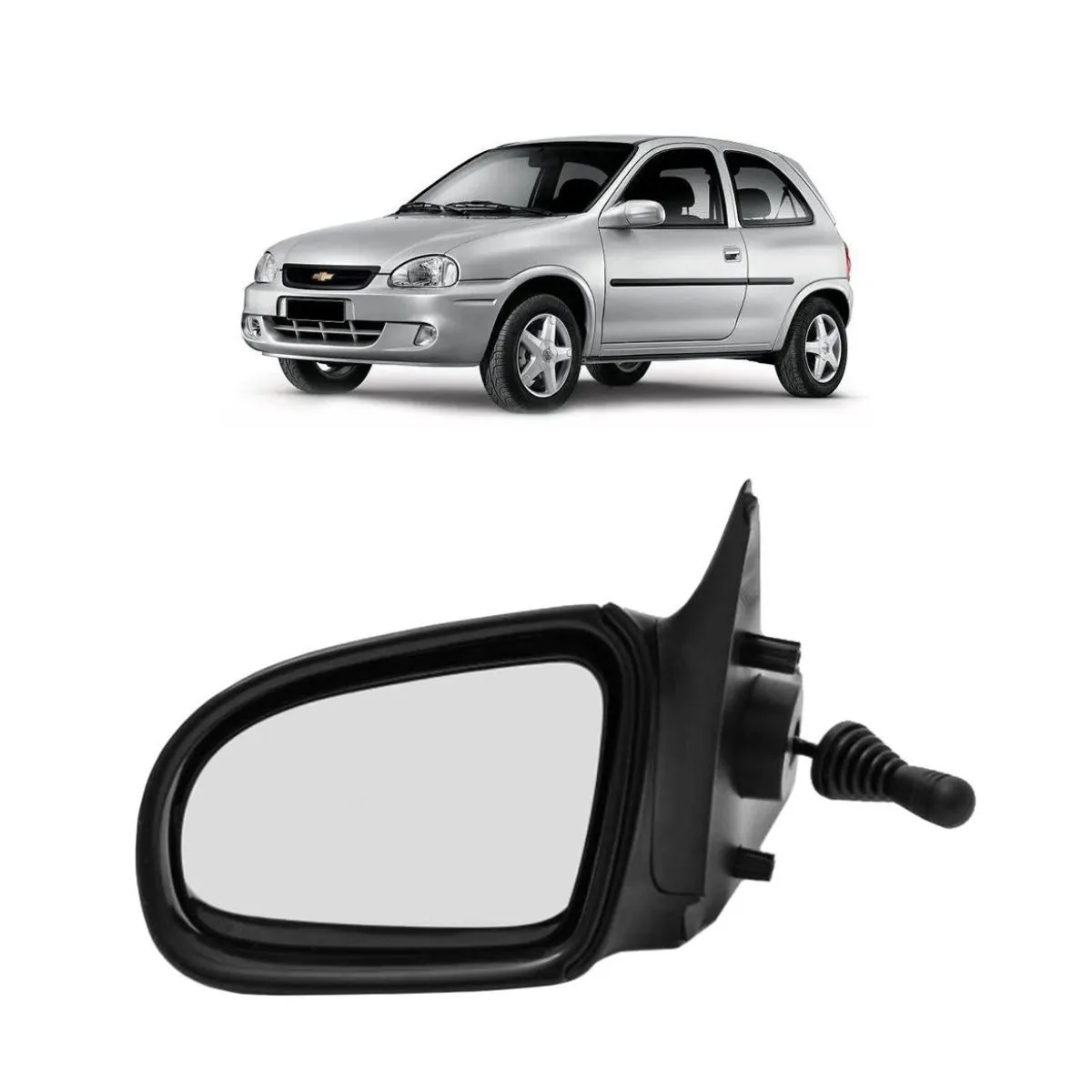 O retrovisor é fabricado com materiais que oferecem resistência e ótimo acabamento. É indicado para reposição ou manutenção da carroceria do seu Corsa, proporcionando visão ampliada e segura para condução. Conecta-se diretamente no lado do motorista por mecanismo manual, dispensando ajustes elétricos.